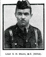 Sidney Steven's Neuve Chapelle Correspondence is recorded in the article Dundee's Flodden in The Dundee Book which also includes reference to his bother Harvey Steven who was later killed in action. Both were sons of Robert Steven, 2 Invermark Terrace, Barnhill. Lieutenant Sidney Herbert Steven MC was killed at Loos on 25th September, aged 25. He is one of the many who have no known grave and whose names are recorded on the Loos Memorial Panel.