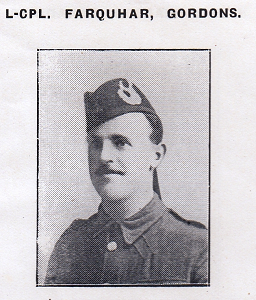 Lance-Corporal Hugh Farquhar, 9th Gordon Highlanders (Pioneers), was the son of Henry Farquhar, slater, 11 Convent Street, Arbroath. He was twenty-eight years of age, and was at one time employed as a plasterer with Mr. Frank Middleton, Lindsay Street. Lance-Corporal Farquhar had gone to Vancouver, but he returned and joined the 9th Gordons.
